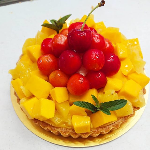 山形の地元でとれたさくらんぼ佐藤錦をタルトに仕立てました マンゴー、パインと一緒に さくらんぼの時期は短いのでお早めに